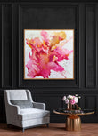 Beautiful original artwork featuring stunning pink, yellow, gold, and ochre. Bold abstract bloom