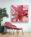 Beautiful original artwork featuring stunning bright pinks, white, gold, and ochre. Bold abstract bloom