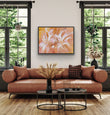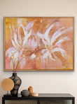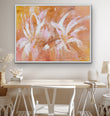 Part of the ‘Wild things’ collection, ‘Dawn’ is a joyful piece with an uplifting palette. Rich tones of ochre, pink and gold contrast with crisp white in the abstract flowers.