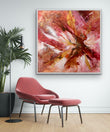 Beautiful original artwork featuring stunning pink, yellow, gold, and ochre. Bold abstract bloom