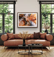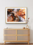 This stunning painting was created with layers of free flowing paint, fluid acrylics, spray paint, pigments and more. Delicious accents of deep gold paint as well as shimmers of light gold and graphite are captured in detail in this high resolution print.