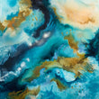 Created with multiple fluid and textured layers, this piece is full of movement and intricate details. Rich navy blues contrast with warm golden tones and highlights of metallic paint which reflect in the light.