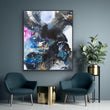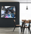 Bold pink, black and blue splash painting