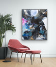 Created in layers and with a range of materials including acrylic inks, paints, oil pastels and more. This painting looks equally impressive hung portrait or landscape. Featuring a striking black float frame.