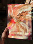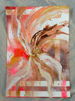 Small abstract flower original painting in a bright colour palette. Featuring pink, yellow, white and gold accents.