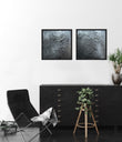 “Terrain 2” is a captivating artwork with a richly textured surface resembling the contours of a barren terrain or celestial body. The intricate details and monochromatic black and gray tones add to its stark, abstract beauty, inviting closer inspection. Created using a custom texture medium, acrylic paints, and spray paint. Housed in a sleek black float frame, it makes a striking statement on its own or when paired with its companion piece, “Terrain 1” for a cohesive, contemporary display.