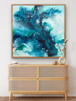 Measuring 123 x 123cm (framed), this artwork will be statement in your home. Framed in raw oak float frame. Please allow an extra 1-2 weeks if black or white framing chosen.