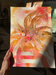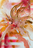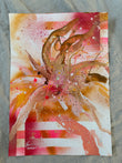 Small abstract flower original painting in a bright colour palette. Featuring pink, yellow, white and gold accents.